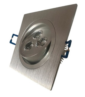 3,30 €FOCO EMPOTRABEL LED 3W BASCULAR. CUADRADO. 200 LÚMENES. DIMENSIONES: 93x93x45MM, CORTE DE TECHO: ᴓ78x45MM. COLOR PLATA. DRIVER INCLUIDO. DISPONIBLE EN LUZ CÁLIDA (3000K).