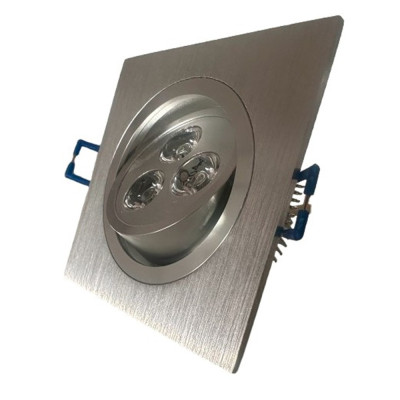 3,30 €FOCO EMPOTRABLE LED 3W BASCULAR. CUADRADO. 200 LÚMENES. DIMENSIONES: 93x93x45MM, CORTE DE TECHO: ᴓ78x45MM. COLOR PLATA. DRIVER INCLUIDO. DISPONIBLE EN LUZ CÁLIDA (3000K).